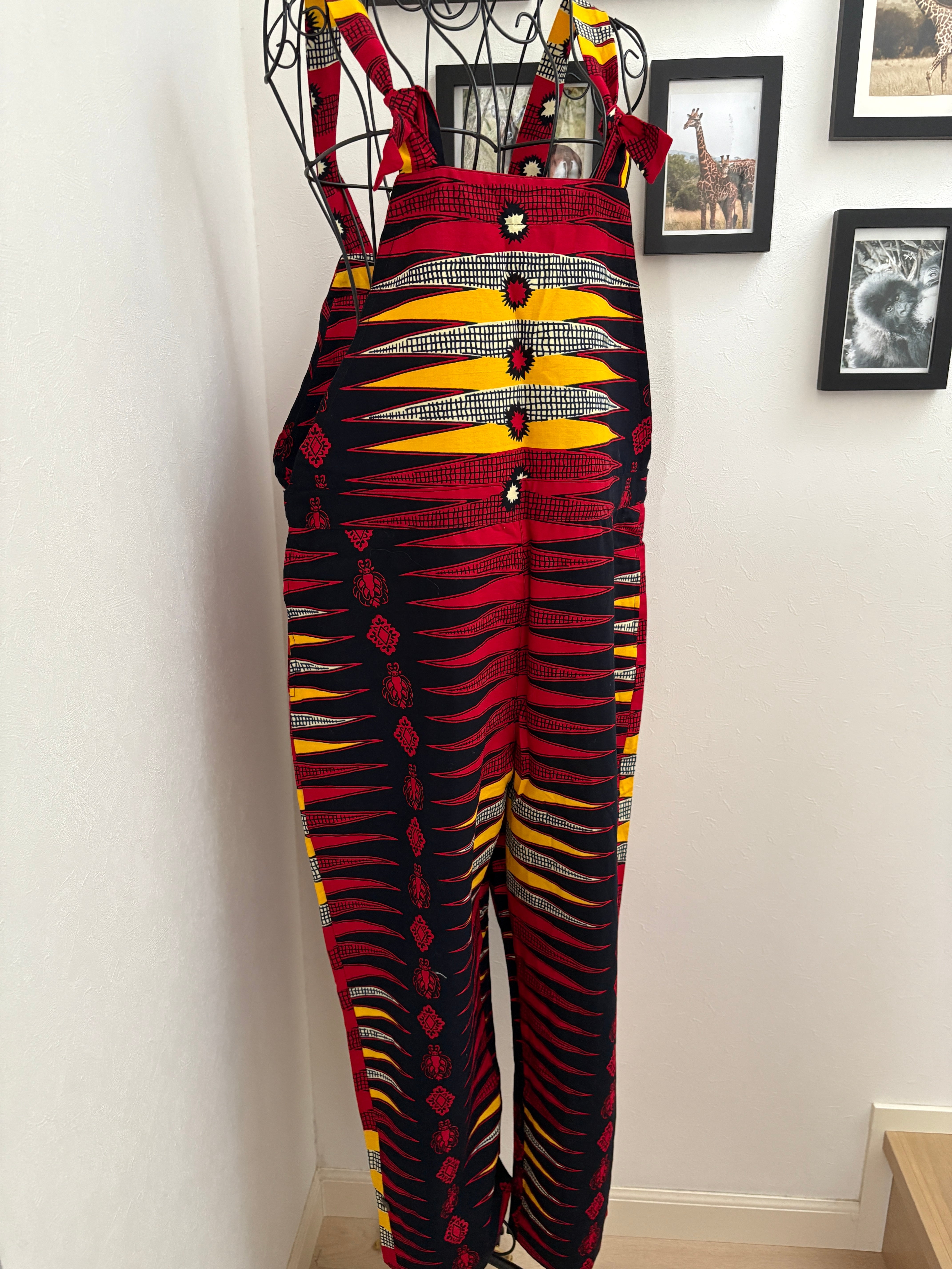 その名のとおり、V字サロペットパンツはファッションに新たな風を吹き込むアイテムです。脚元がワイドなスタイルで、動きやすさとリラックスした雰囲気を兼ね備えています。肩紐にはゴムが使用されており、着心地も抜群。アフリカンテイストのデザインが、コーディネートに個性的なアクセントを加えてくれます♪