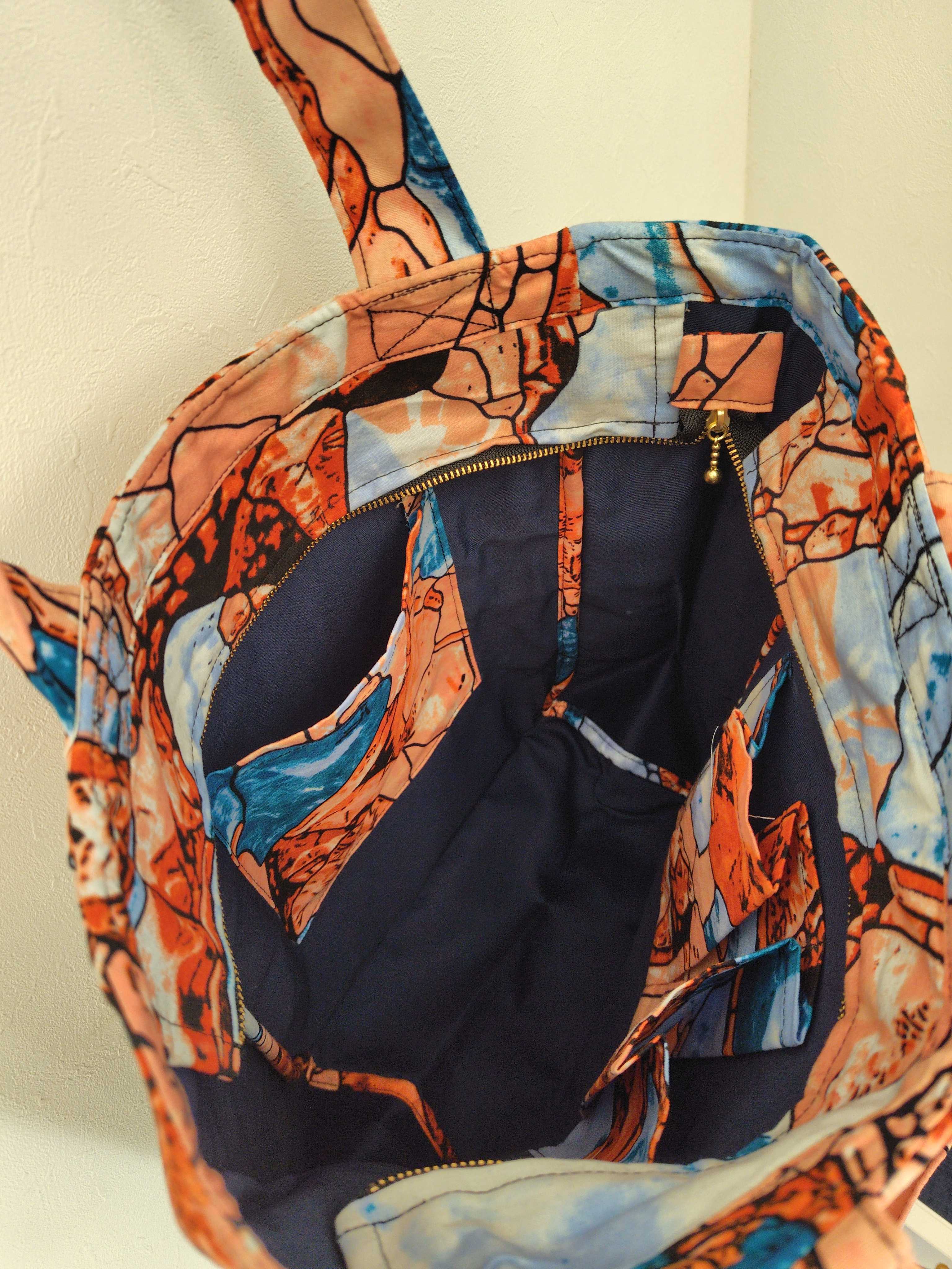 Yukoバッグは、ポケットがたくさんある機能的なバッグです。内側にはメインポケットの他にも、小物やスマートフォンなどを収納できるポケットがたくさんあります。サイドポケットにはペットボトルも入ります。荷物の整理がしやすく、便利さ抜群。