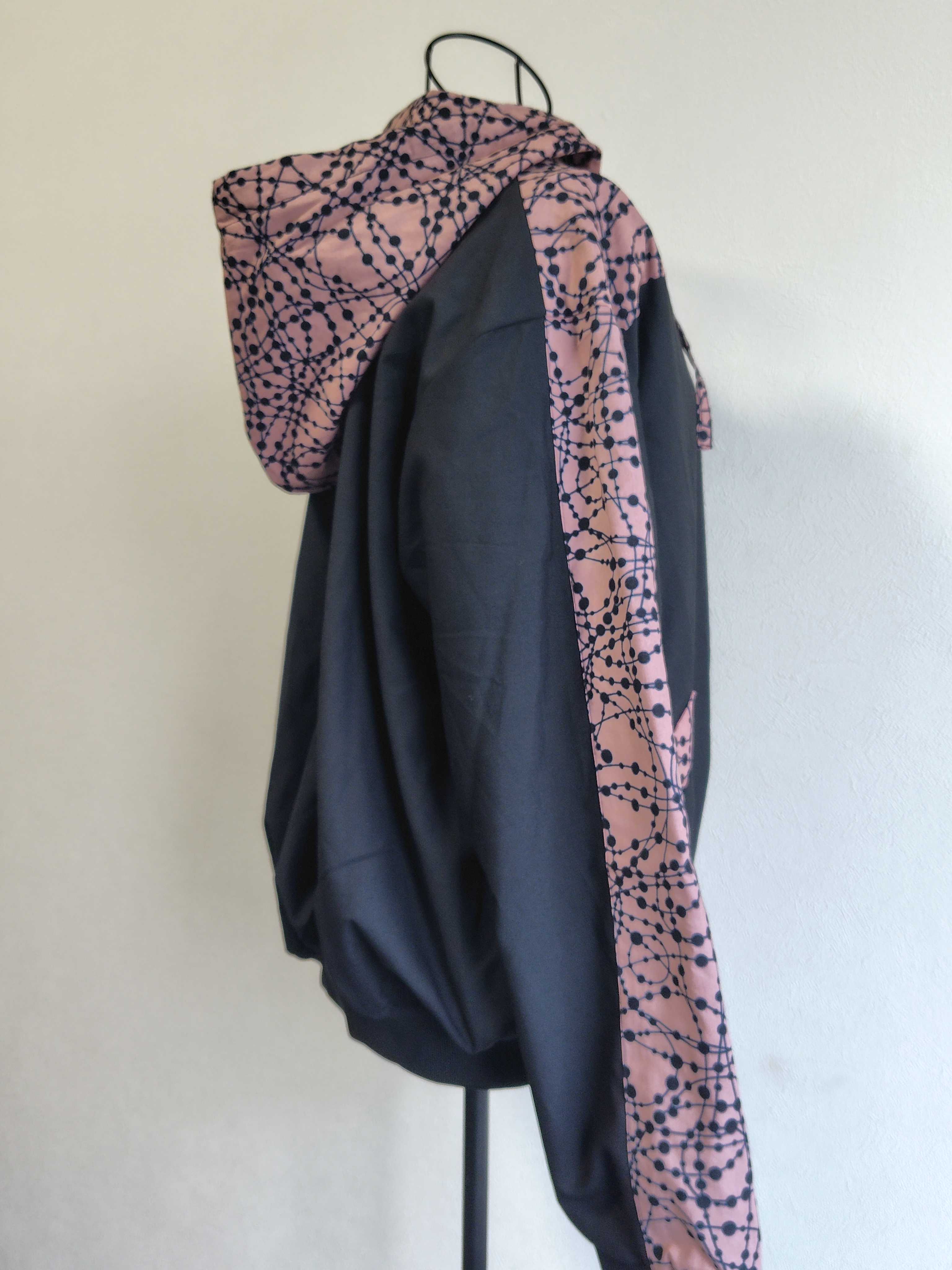 キテンゲ生地が程よいアクセントになったパーカーブルゾン。お気に入りの柄で、さりげなくあなたらしさをアピールしませんか?
