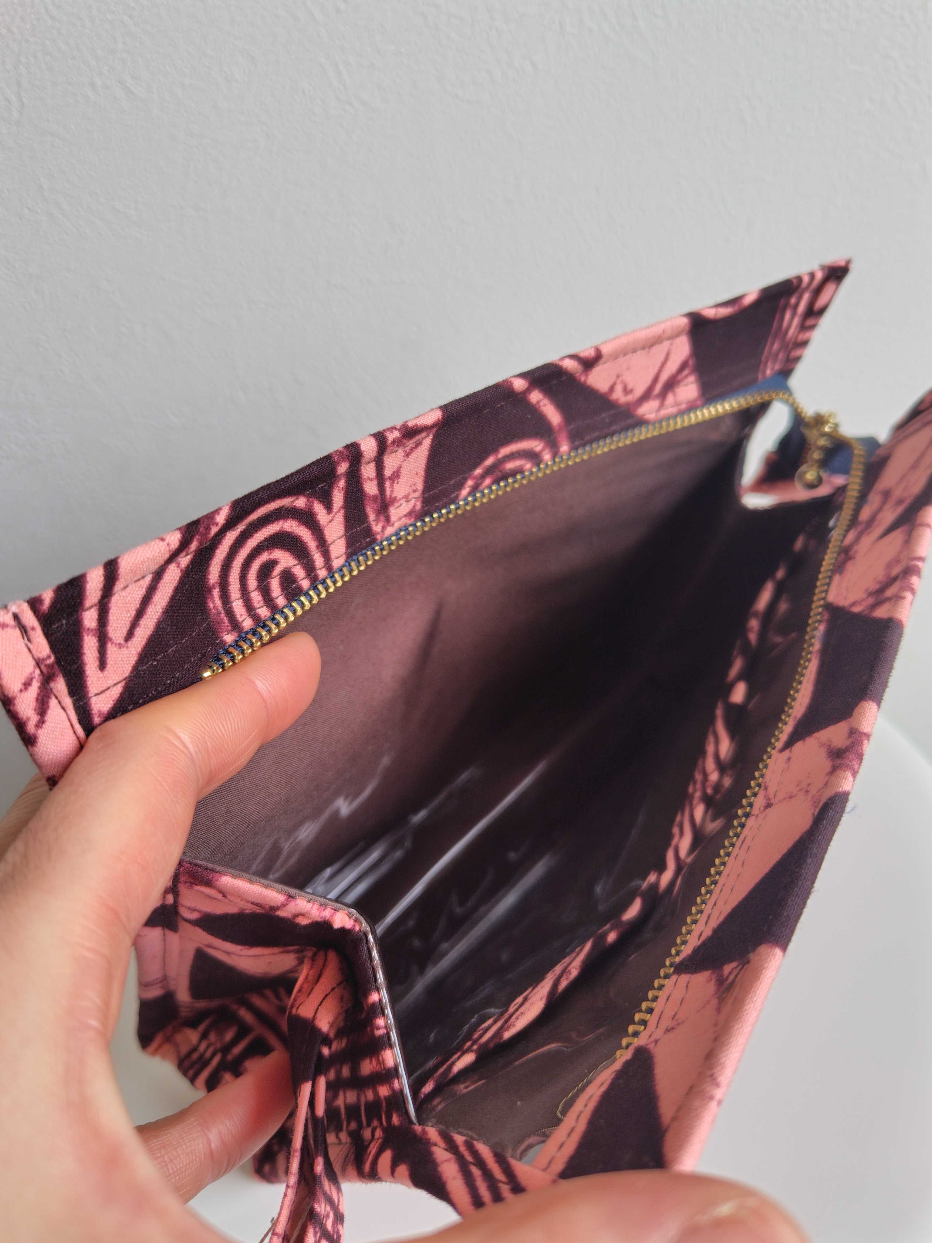 エキゾチックなデザインが特徴であるこちらのポーチは、内側はビニール加工がされており、汚れや水濡れから中身を守ってくれます。