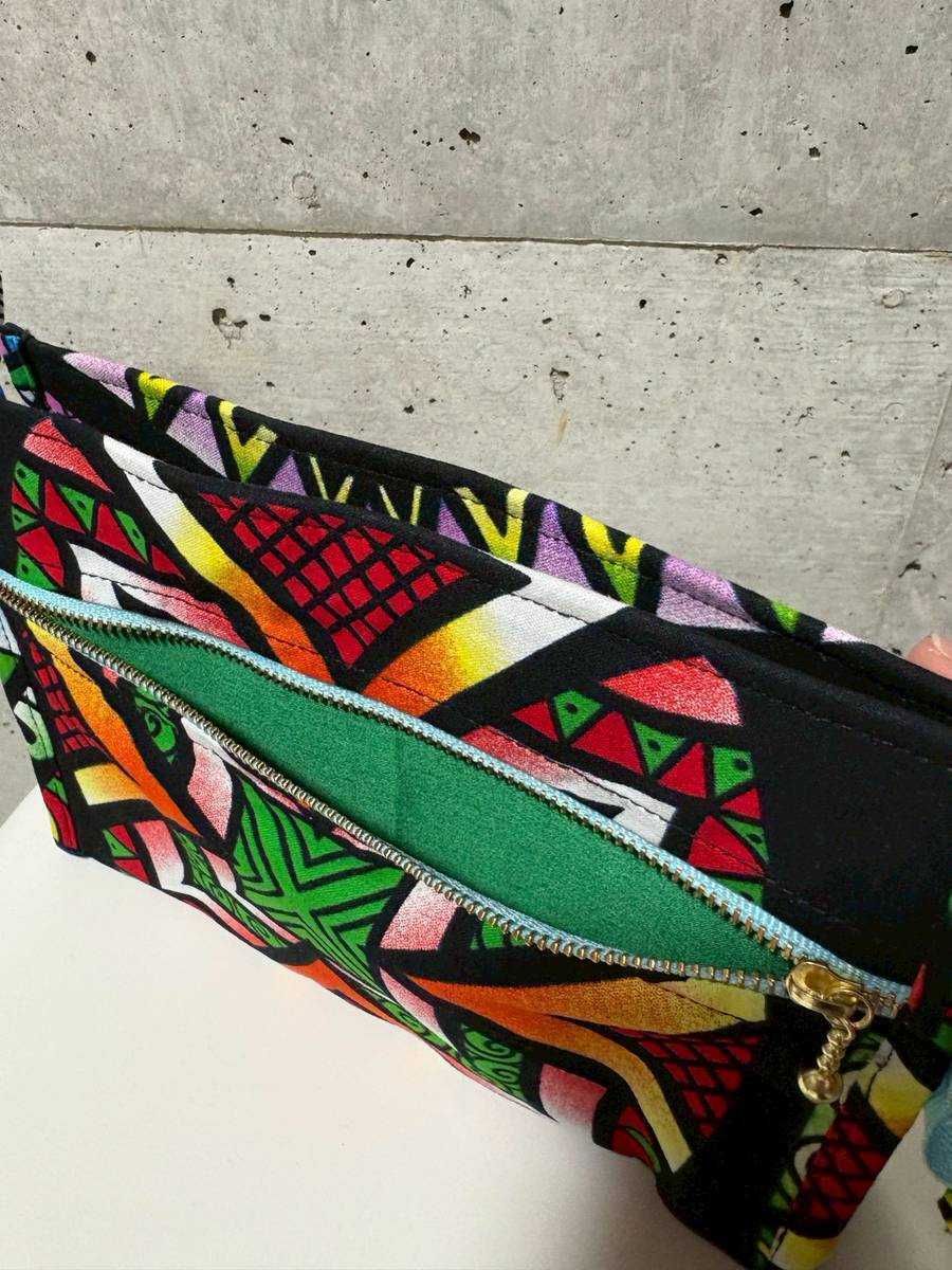 エキゾチックなデザインが特徴であるこちらのポーチは、内側はビニール加工がされており、汚れや水濡れから中身を守ってくれます。