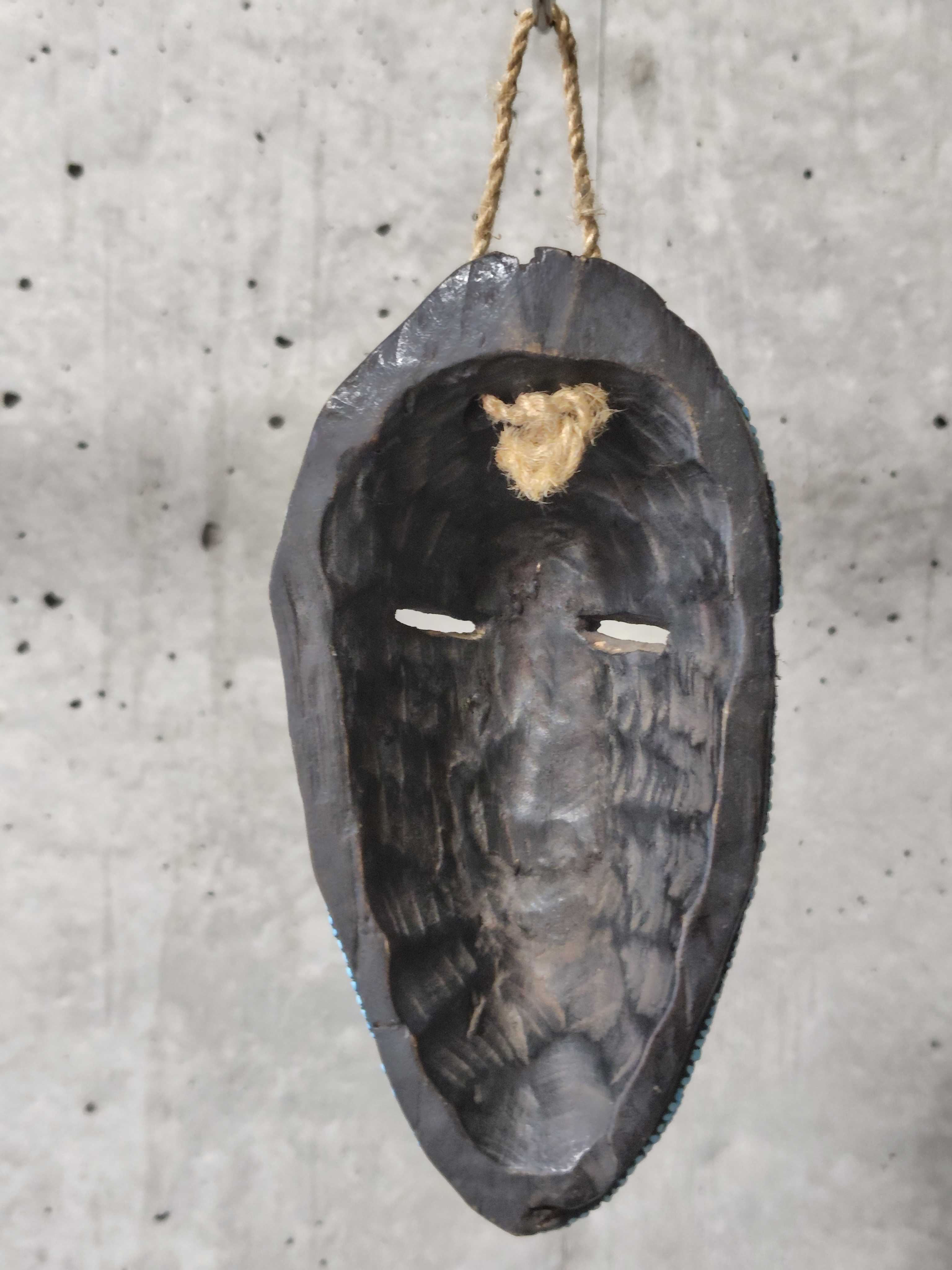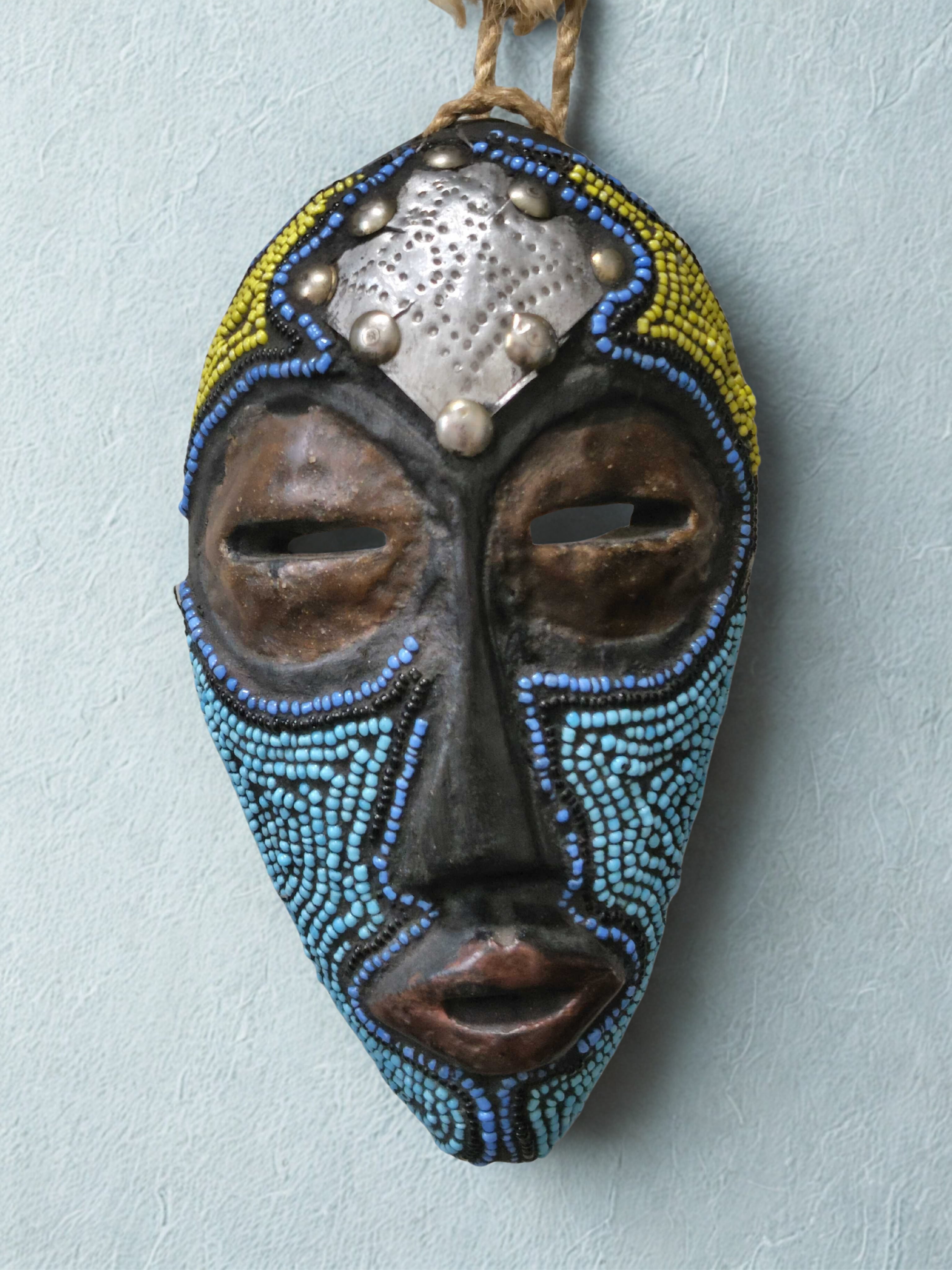 神秘的でもあり、どこかかわいらしさも感じさせる素朴なつくりのマスク。