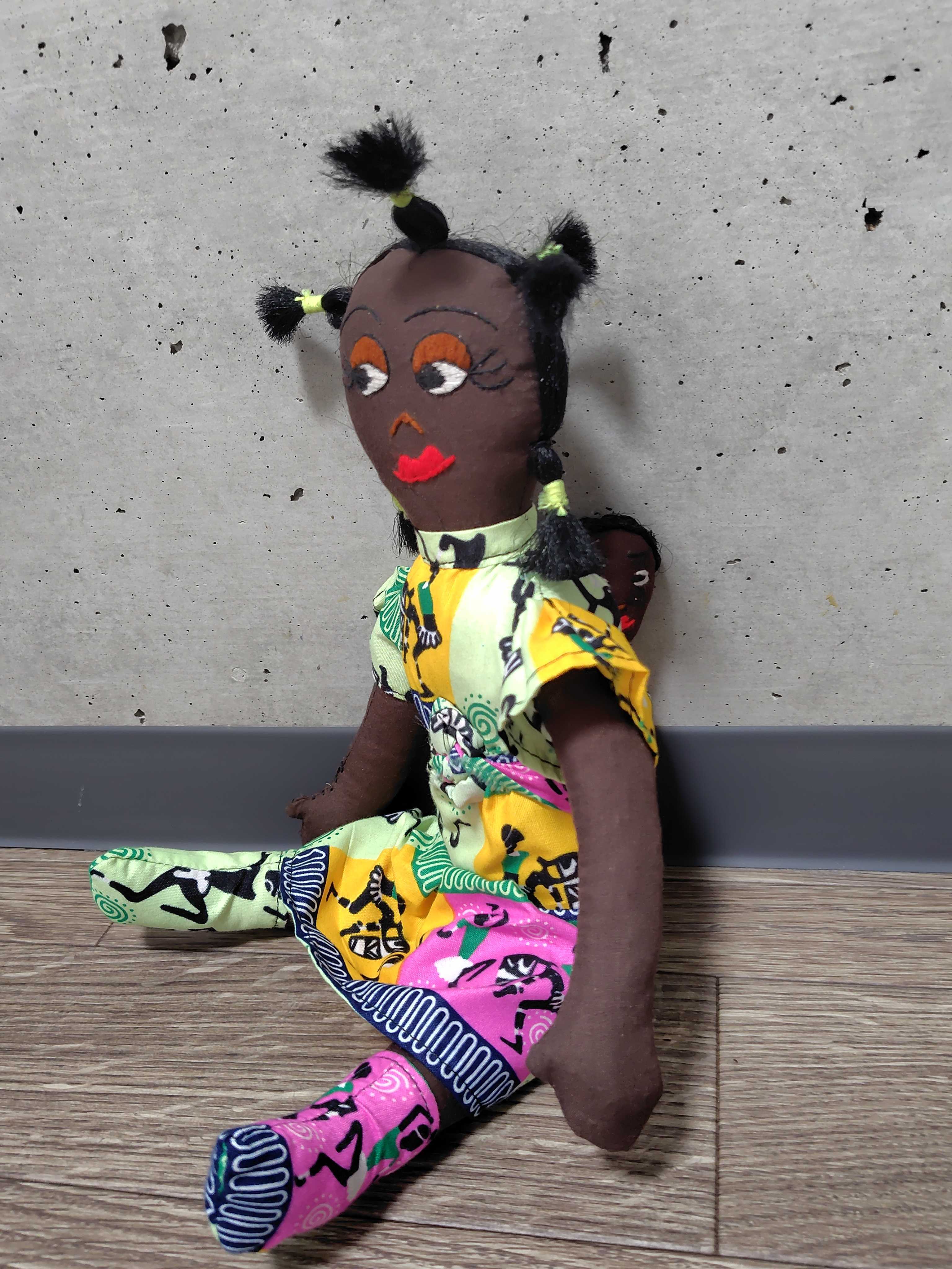 こちらのお人形は、三つ編みヘアのアフリカンママンが背中に赤ちゃんをおんぶ。